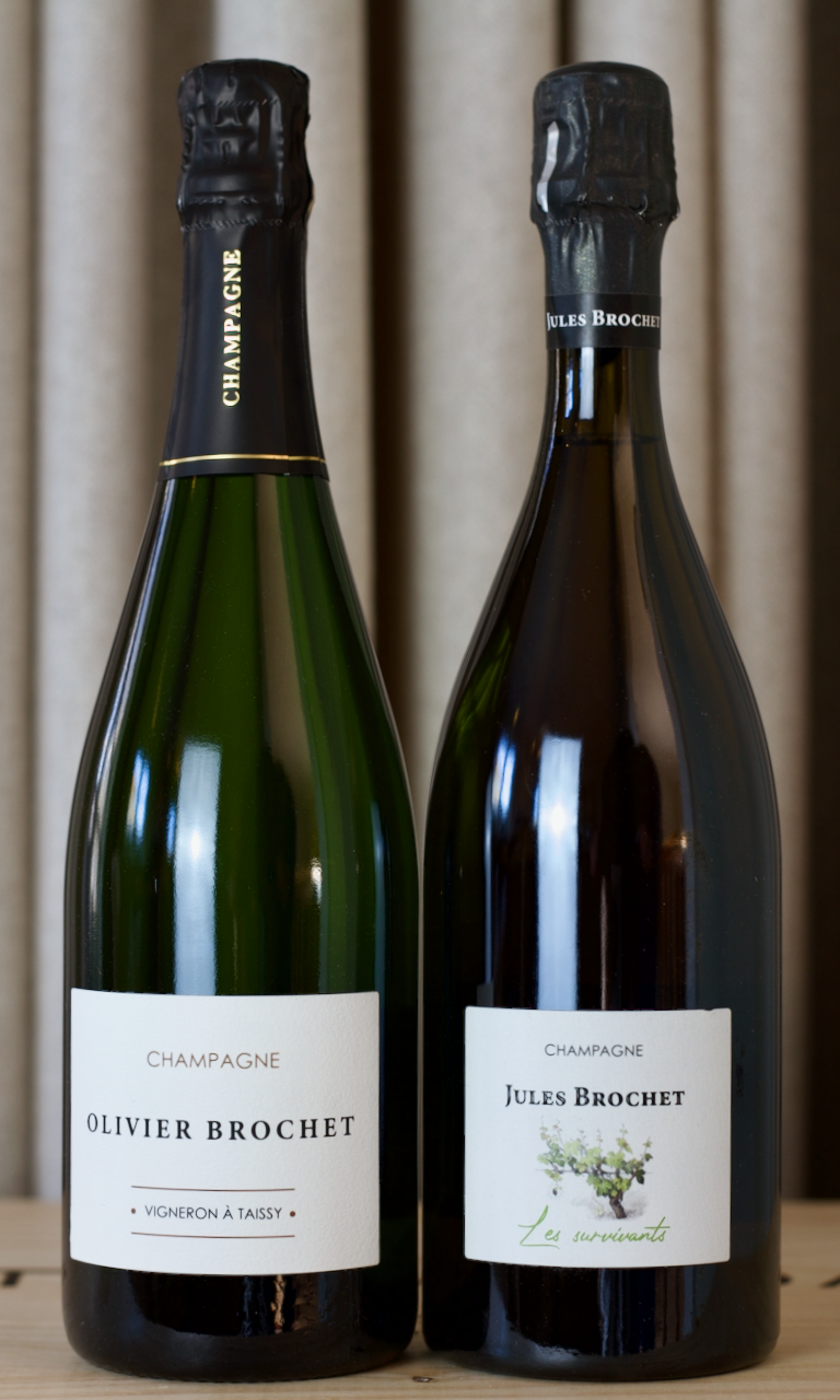 1 flaske Olivier Brochet Extra Brut, og 1 flaske Jules Brochet 'Les Survivants'. Begge vine er lavet af Pierric Brochet, men druematerialet til 'Olivier Brochet' er fra faderen Oliviers sidste høst.